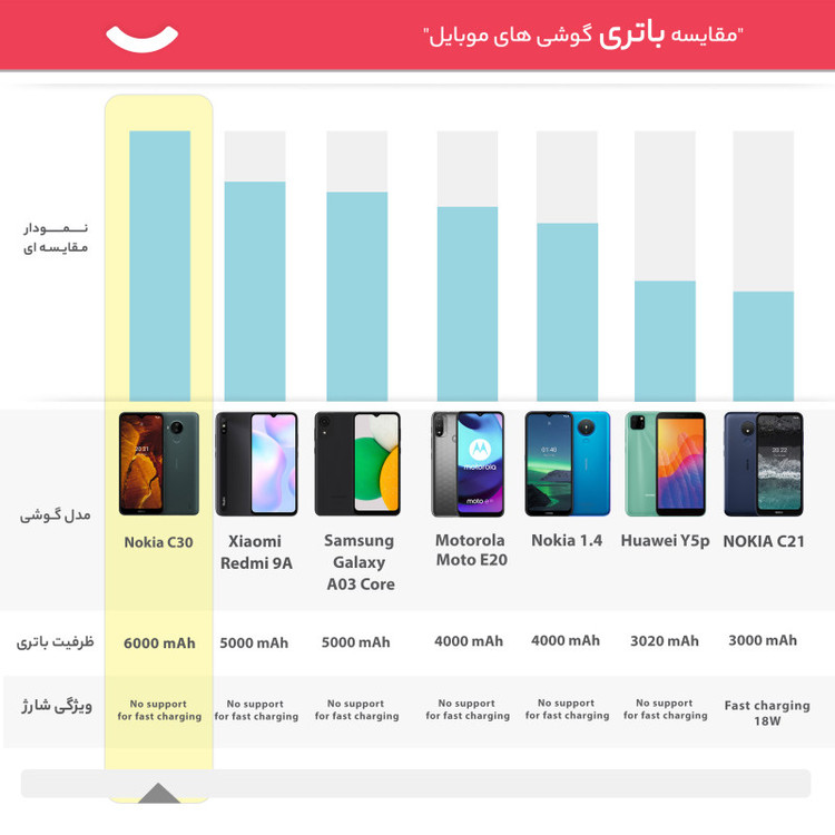 مشخصات باتری : باتری از نوع لیتیوم-پلیمر با ظرفیت 6000 میلیآمپر ساعت